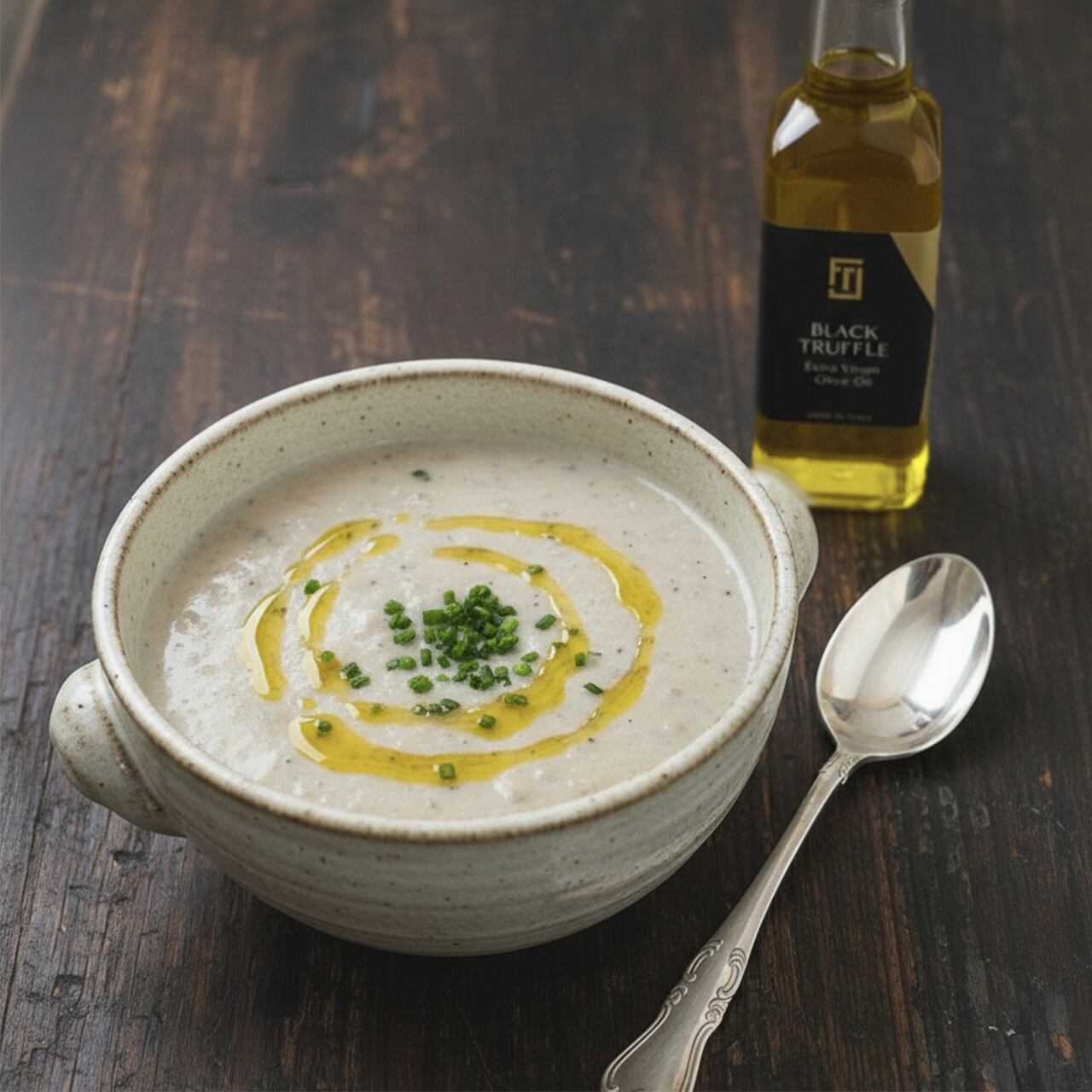 オリーブオイルのやさしい風味が黒トリュフの深い香りを引き立て、