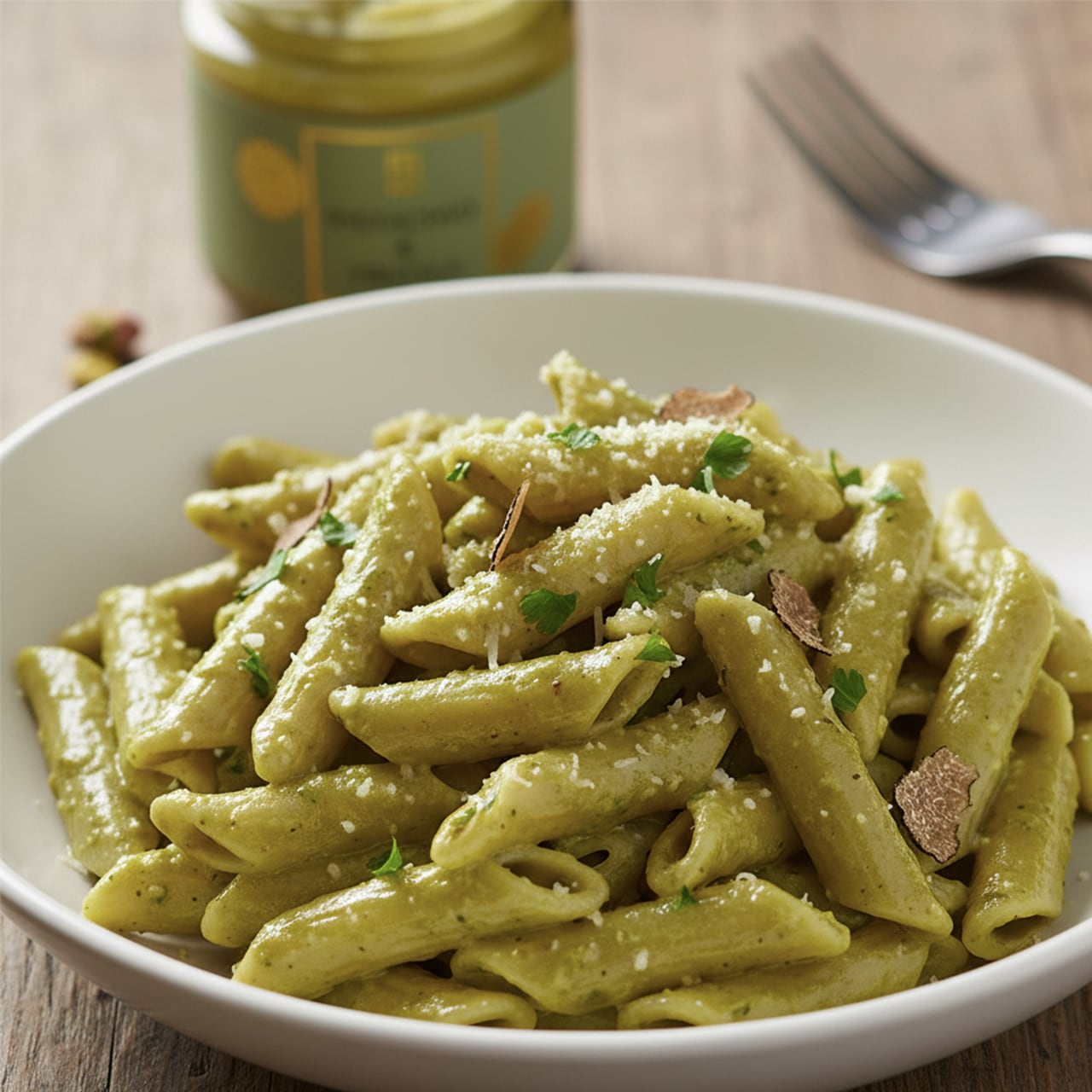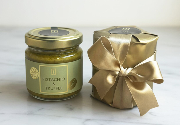 香ばしいピスタチオに黒トリュフの奥行きある香りを重ねた、贅沢なスプレッド。