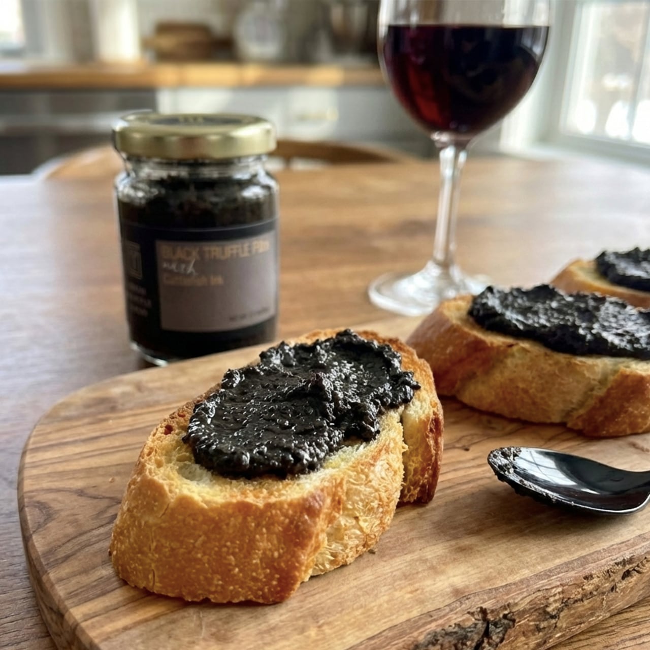 森の恵みを感じさせる、イタリア産シャンピニオンマッシュルームと黒トリュフをベースに、コクのある黒オリーブ、ほんのり香るにんにくを絶妙なバランスでブレンドしました。いかすみの濃厚な旨味が全体を包み込み、ワインやシャンパンとの相性も抜群です。