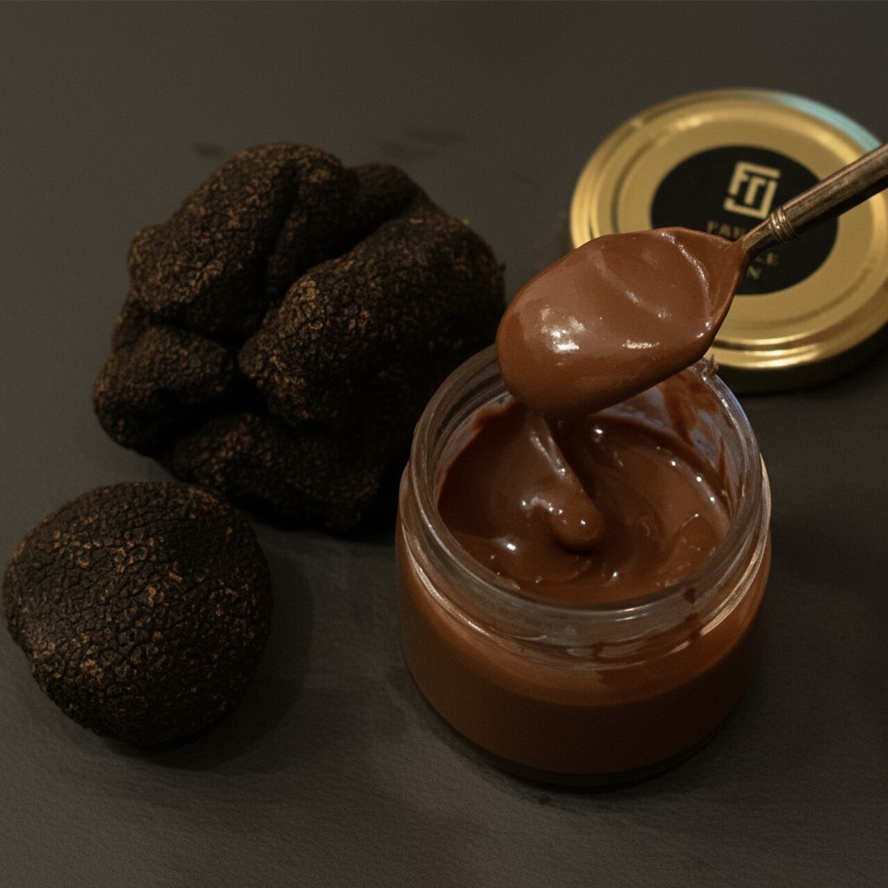 そのままはもちろん、バゲットやパンケーキ、アイスクリーム、フルーツに添えても格別。幾度もの改良を重ね完成したこの逸品は、トリュフ好きもジャンドゥーヤ好きも満足の贅沢な味わいです。