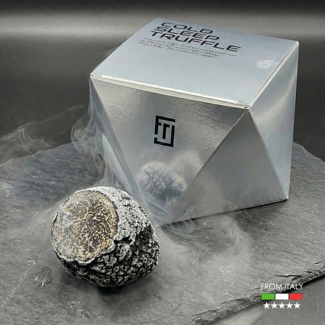 FRESH TRUFFLE JAPANでは、旬の黒トリュフをフレッシュなまま輸入し、日本の最新冷凍技術により「COLD SLEEP TRUFFLE®︎(コールドスリープトリュフ)」として急速冷凍。一般的な冷凍トリュフとは異なり、獲れたての香りと風味をそのまま閉じ込めました。