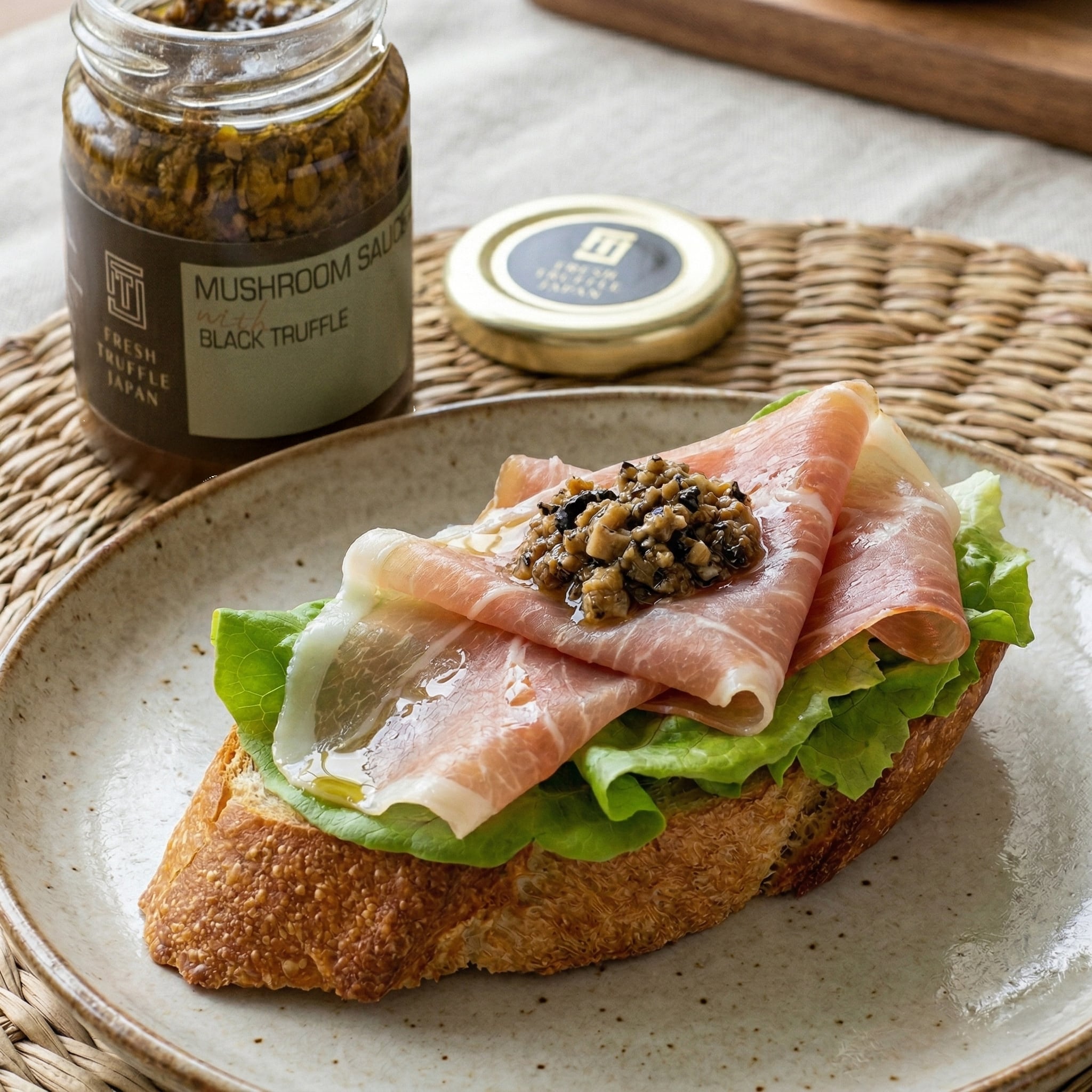 FTJのタルトゥファータは、イタリア産・黒トリュフに加え、生鮮のシャンピニオン、ポルチーニ、黒オリーブ、アンチョビ、エキストラバージンオリーブオイルなど、厳選されたプレミアム食材が見事に調和した逸品です。一瓶でレストランクオリティの味わいを楽しめる贅沢なソースで、開栓してそのまま召し上がれる他、加熱調理にも向いています。